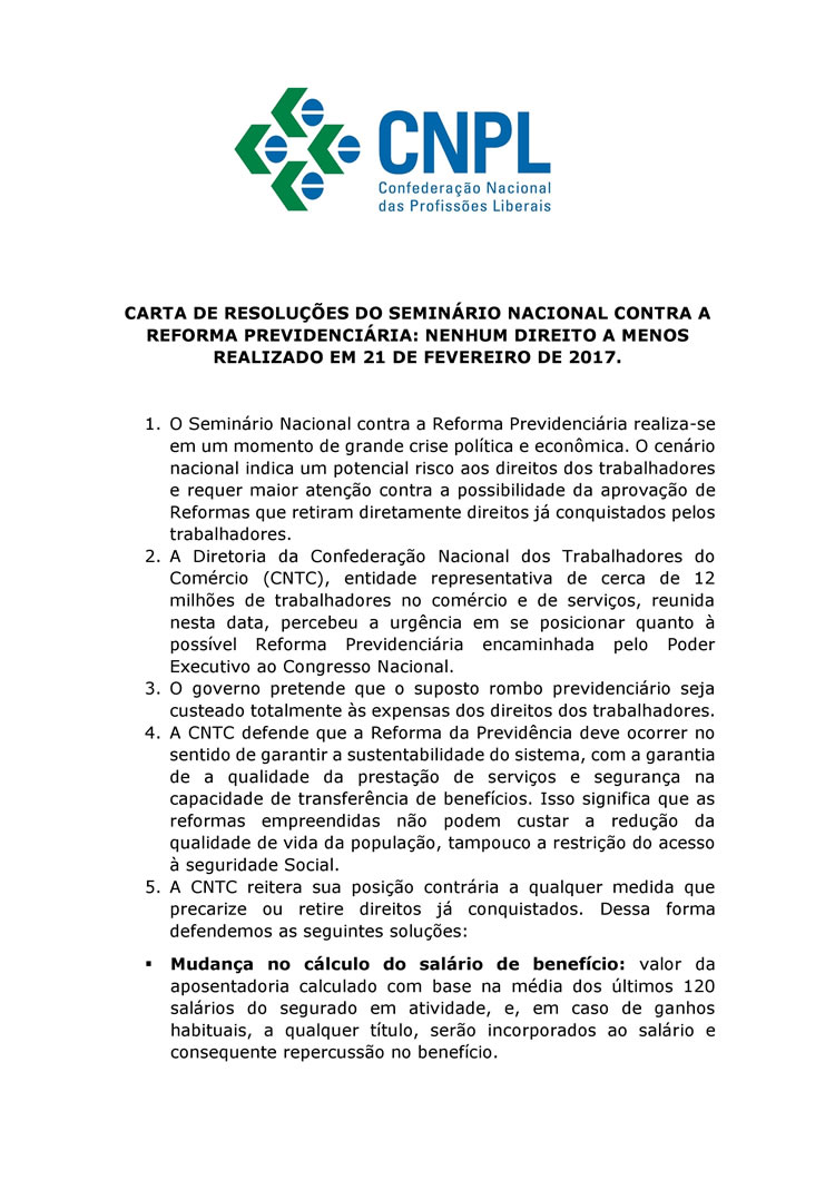 Carta de Resoluções - Seminário Nacional Contra a Reforma da Previdência